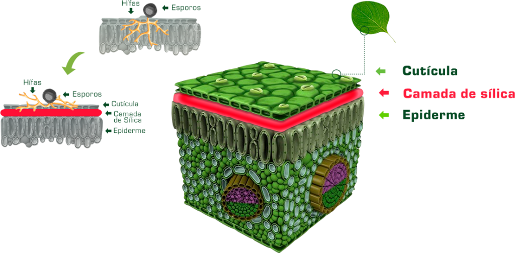 Forma uma camada de sílica nas folhas e aumenta a tolerância a pragas e doenças
