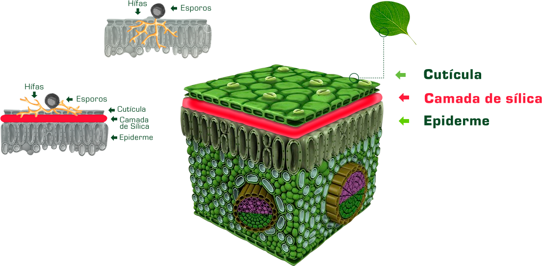 Forma uma camada de sílica nas folhas e aumenta a tolerância a pragas e doenças